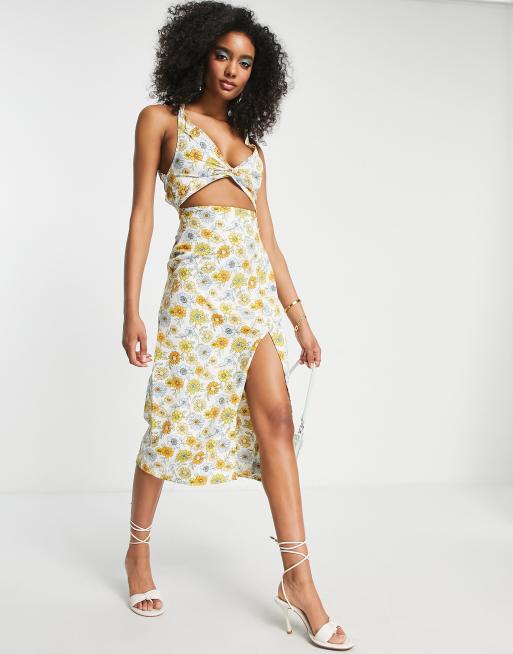 ASOS DESIGN knot front cut out strappy back maxi sundress in summer floral
