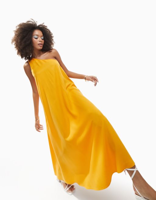 ASOS DESIGN knot one shoulder midi dress in tangerine