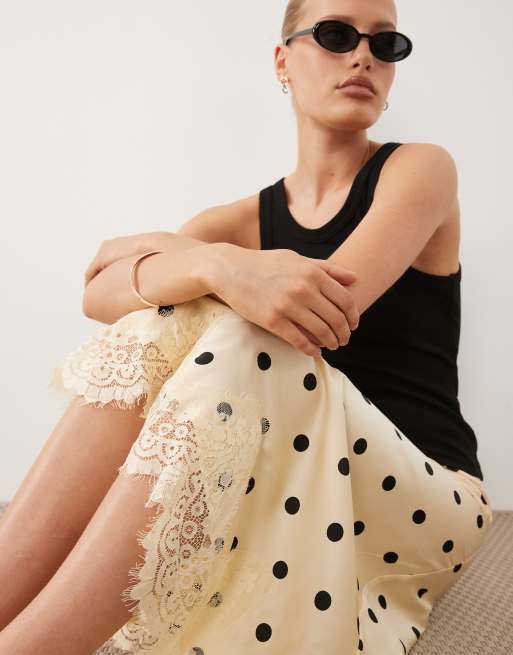ASOS DESIGN lace hem fishtail maxi skirt in polka dot print - MULTI