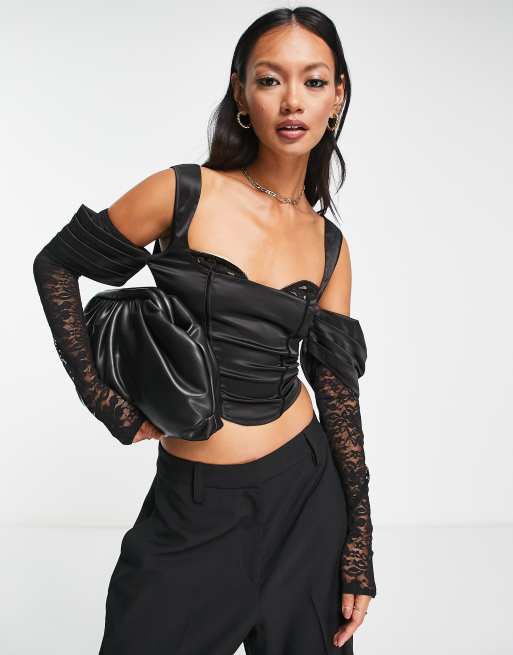 ASOS DESIGN lace sleeve satin mix corset in black
