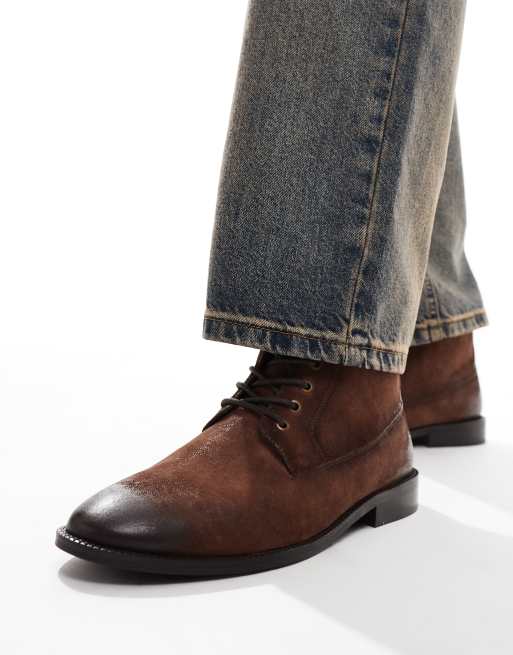 ASOS DESIGN lace up boots in brown waxed suede