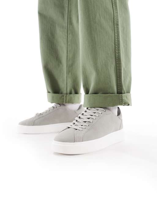 ASOS DESIGN lace up trainers in grey with white sole