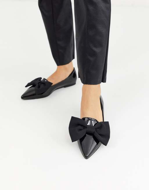 ASOS DESIGN Lake bow pointed ballet flats in black