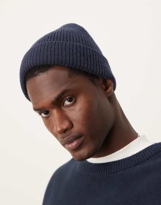 ASOS DESIGN lambswool fisherman ribbed beanie in navy