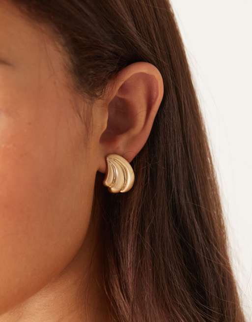 ASOS DESIGN large stud earrings with triple bubble design in brushed gold tone