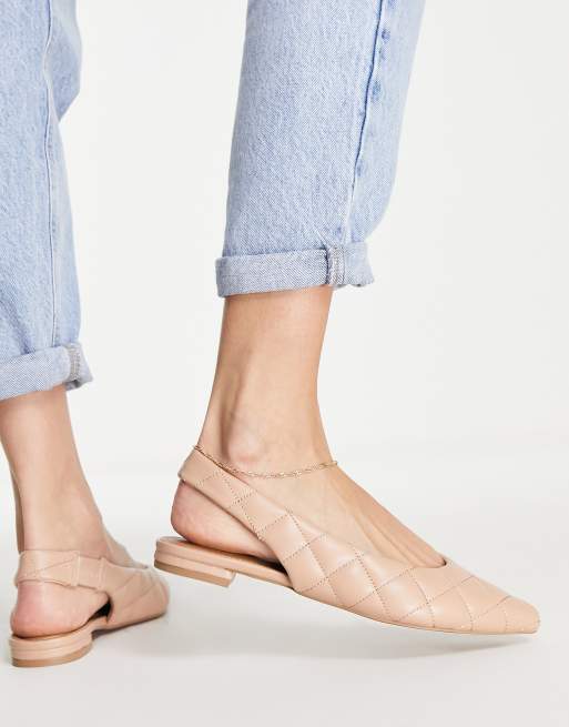 ASOS DESIGN Lasca quilted padded slingback ballet flats in beige