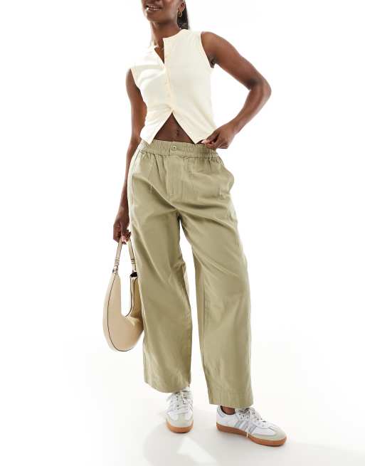 ASOS DESIGN laundered barrel pull on trousers in khaki
