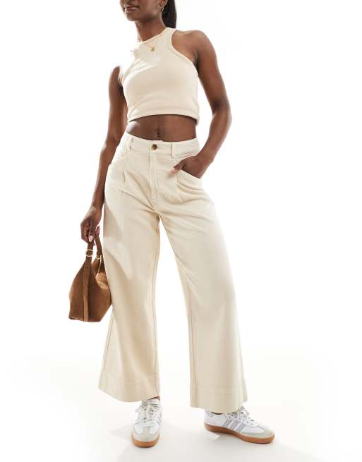 ASOS DESIGN laundered cropped wide leg trousers in sand