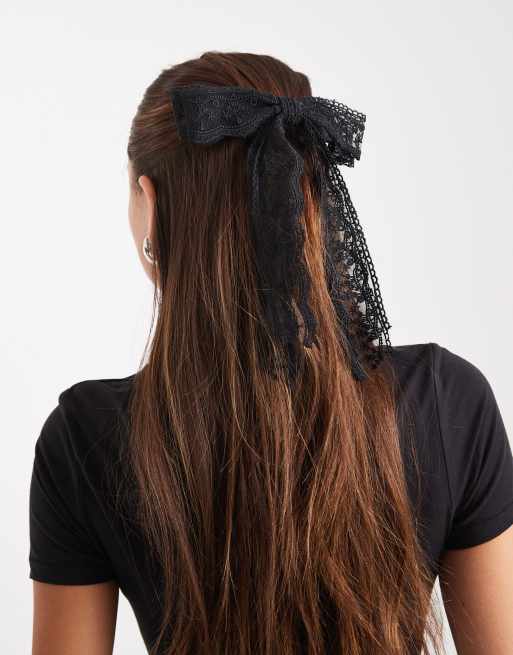 ASOS DESIGN layered lace hair bow clip in black