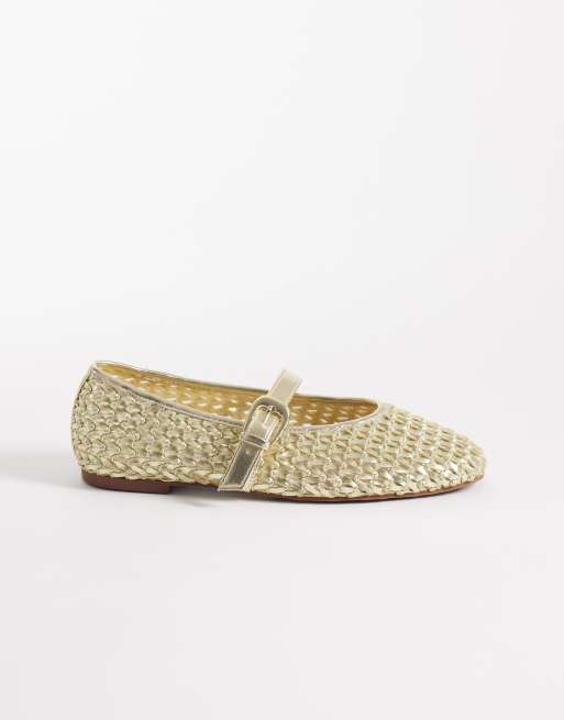 ASOS DESIGN Leah weave mary jane ballets in gold