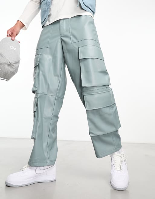 ASOS DESIGN leather look cargo trousers in blue