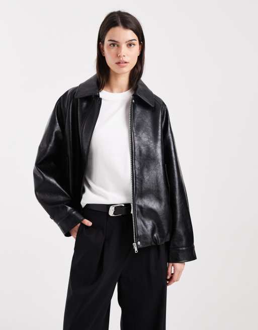 ASOS DESIGN leather look oversized bomber jacket in black
