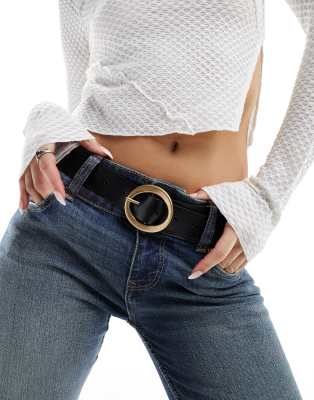 ASOS DESIGN leather oval buckle waist and hip belt in gold