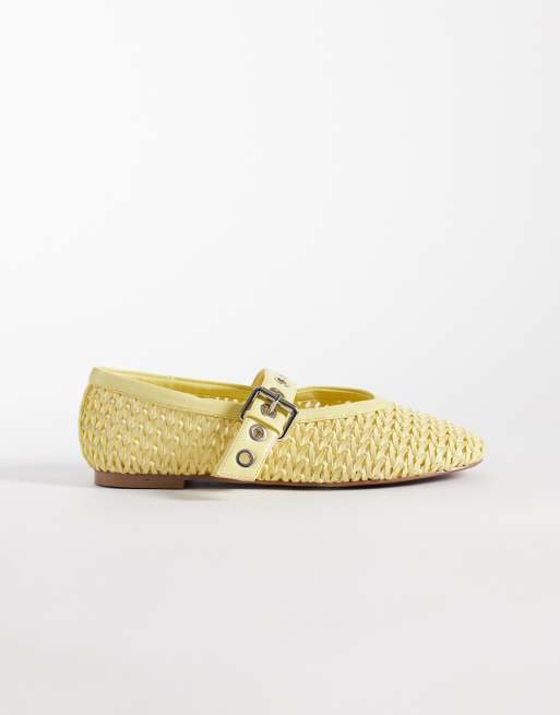 ASOS DESIGN Leonard weave detail mary jane ballets in lemon