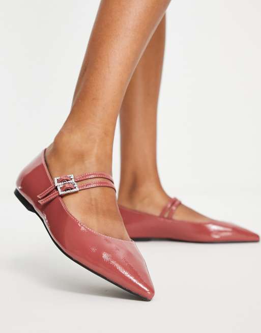 ASOS DESIGN Leonie embellished maryjane ballet flats in rose patent