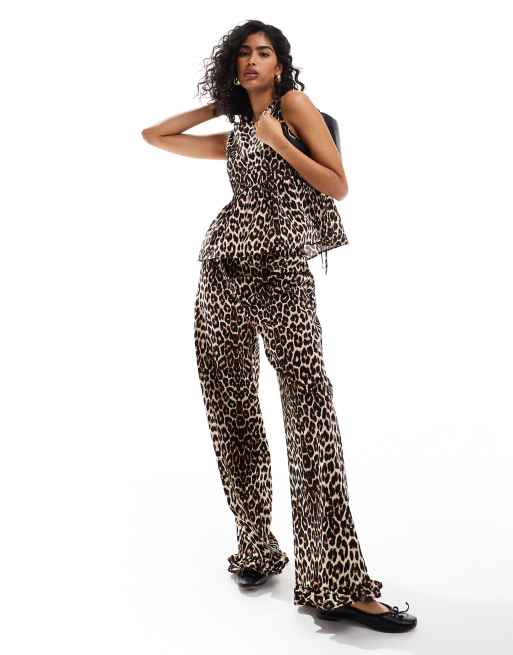 ASOS DESIGN leopard print trousers co ord with frill hem