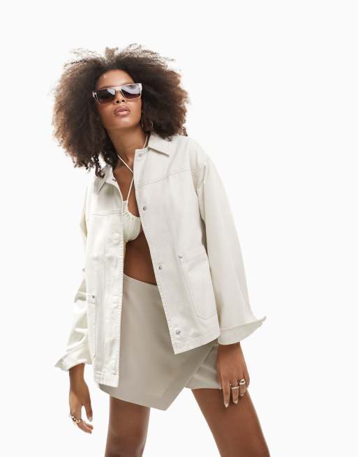 ASOS DESIGN lightweight cotton pocket shacket in ecru