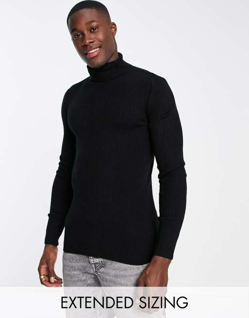 ASOS DESIGN lightweight rib jumper with roll neck in black