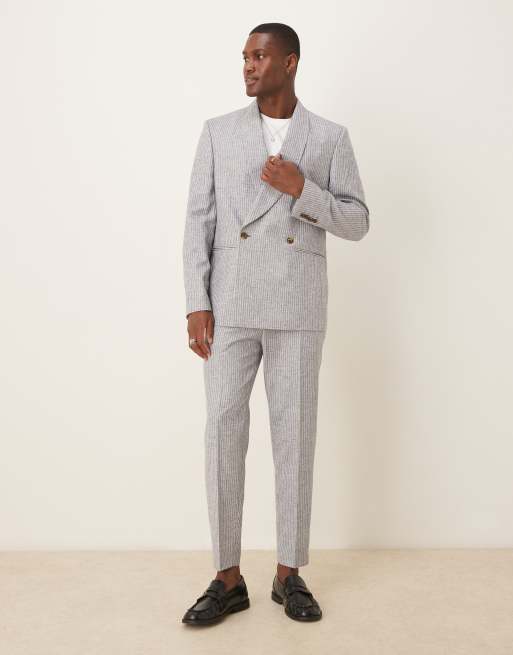 ASOS DESIGN linen blend double breasted regular suit in blue stripe