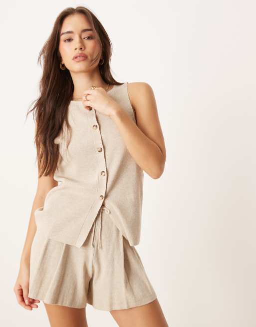 ASOS DESIGN linen blend knitted waistcoat co-ord in ecru