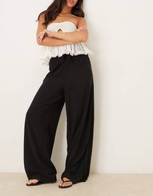 ASOS DESIGN linen blend pull on trouser in black