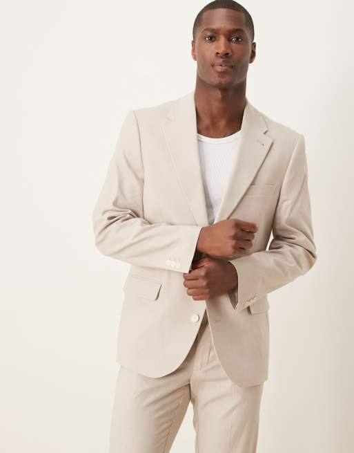 ASOS DESIGN linen blend skinny suit jacket in stone
