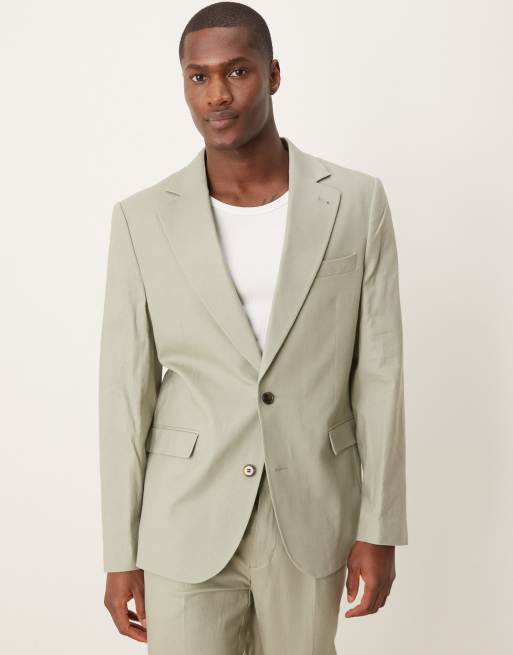 ASOS DESIGN linen blend slim suit jacket in sage green