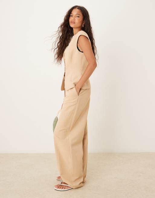 ASOS DESIGN linen blend tailored barrel leg trouser in neutral