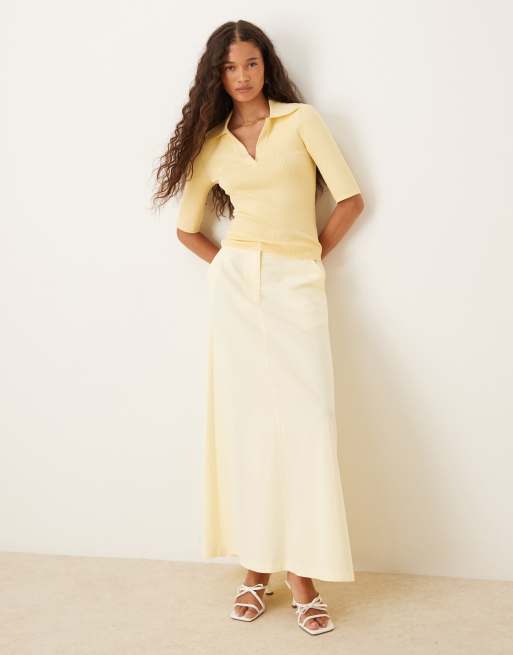 ASOS DESIGN linen blend tailored maxi skirt in buttermilk