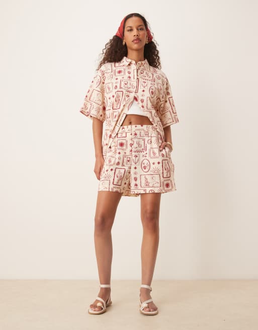 ASOS DESIGN linen boxer shorts co-ord in western print