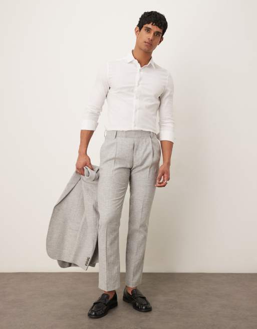 ASOS DESIGN linen cotton blend slim suit trousers in grey herringbone