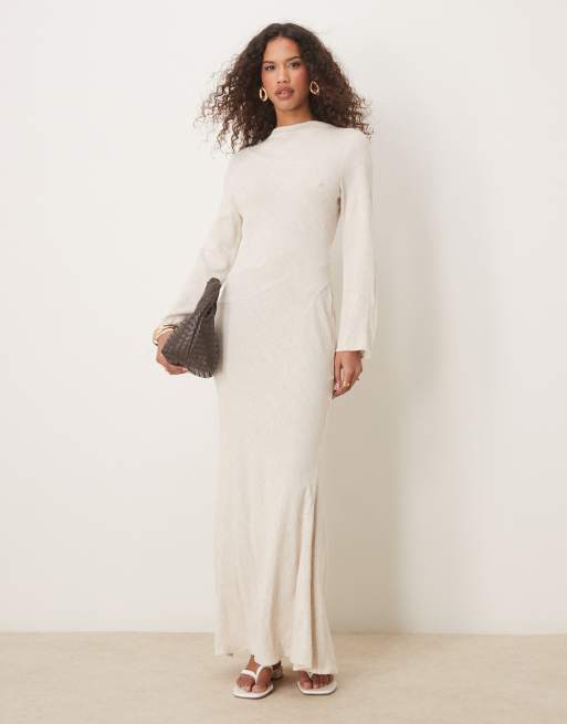 ASOS DESIGN linen high neck seam detail maxi dress in oat
