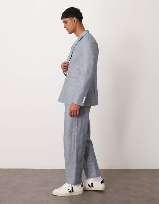 ASOS DESIGN linen oversized tapered suit trousers with stripes in indigo