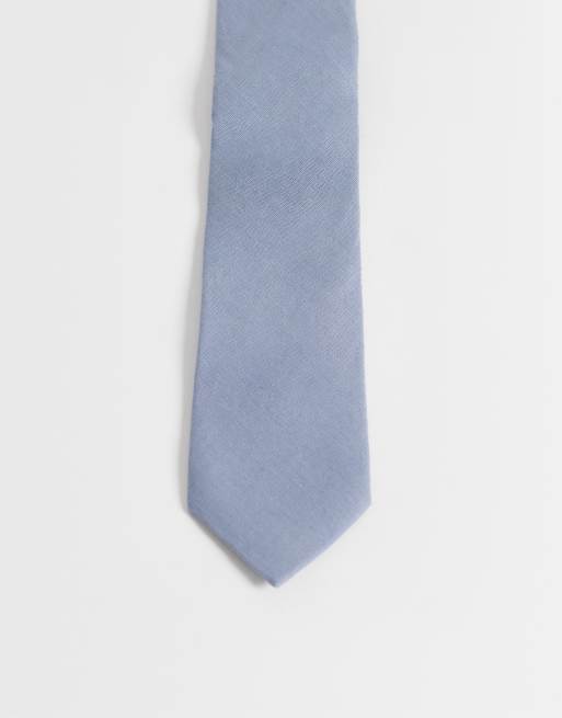 ASOS DESIGN linen rich tie in blue