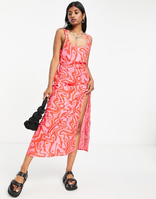 ASOS DESIGN linen scoop neck maxi sundress with split in swirl heart print