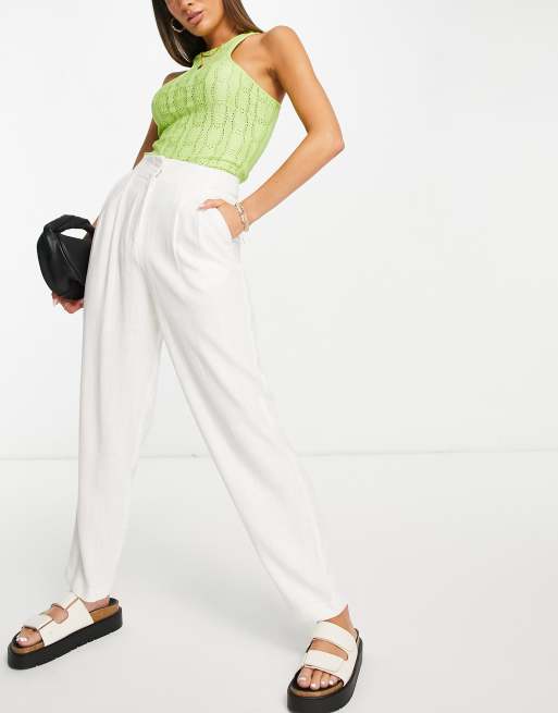 ASOS DESIGN linen soft tapered mom trouser in white