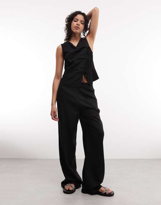 ASOS DESIGN linen wide leg trouser co-ord in black