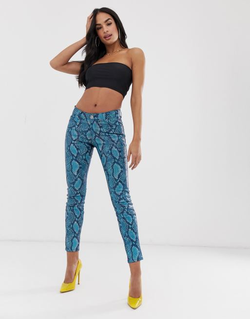 ASOS DESIGN lisbon mid rise 'skinny' jeans in coated blue snake