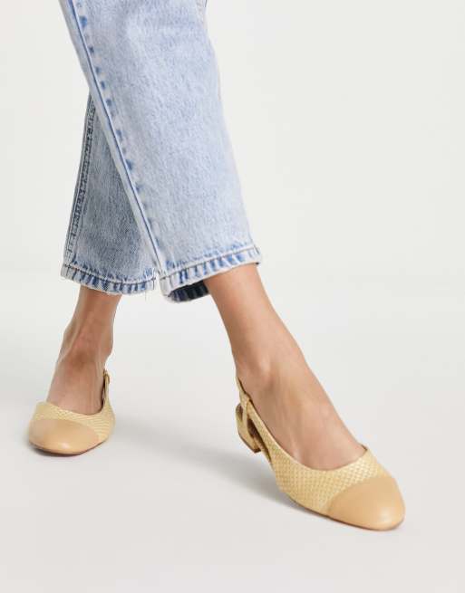 ASOS DESIGN Lively slingback ballet flats in natural raffia