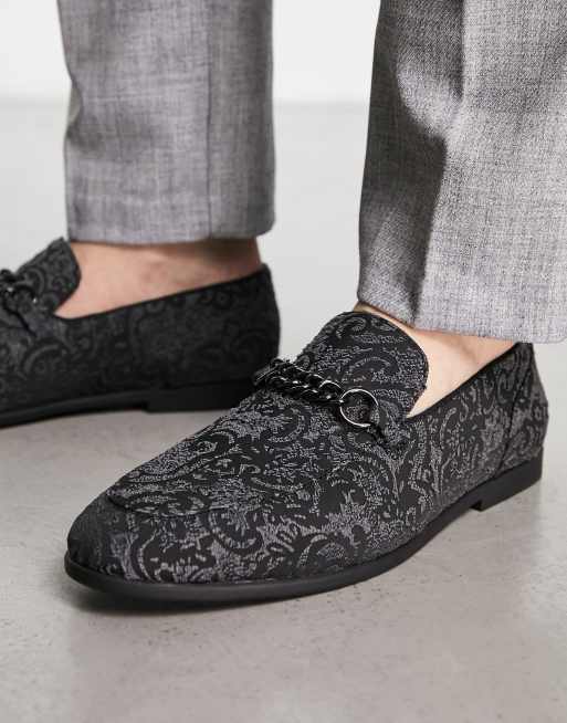 ASOS DESIGN loafers in charcoal velvet with snaffle