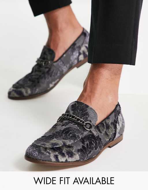 ASOS DESIGN loafers in grey velvet floral design with snaffle