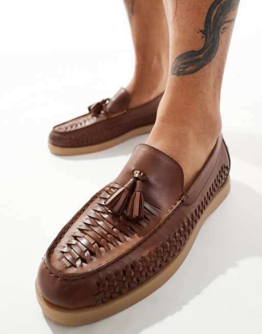 ASOS DESIGN loafers with weave detail in tan leather with natural sole - TAN