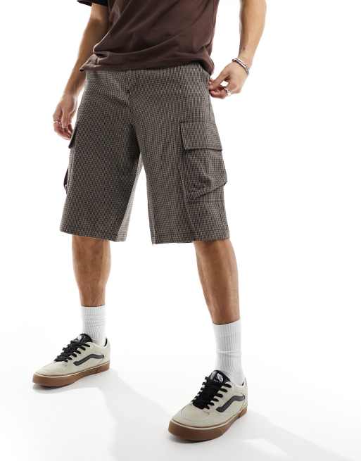 ASOS DESIGN long length cargo shorts in brown check