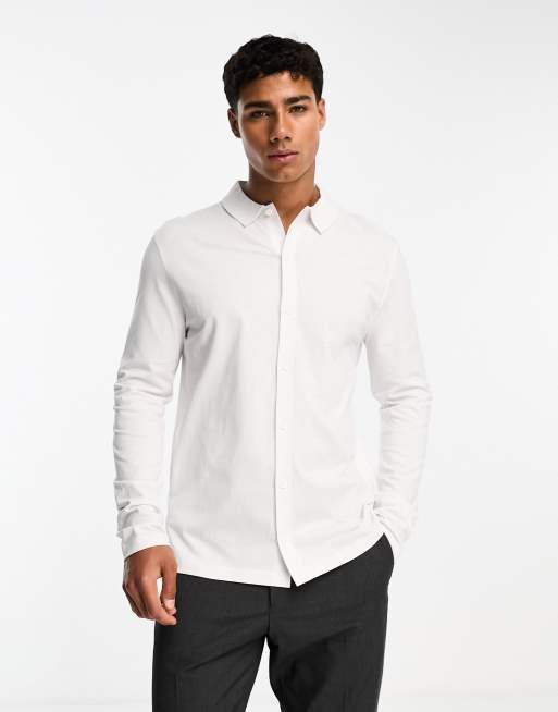 ASOS DESIGN long sleeve jersey shirt in white