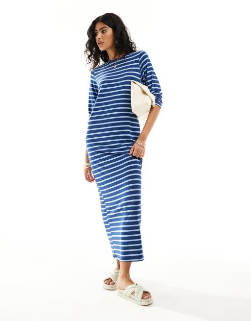 ASOS DESIGN long sleeve maxi t-shirt dress in blue stripe