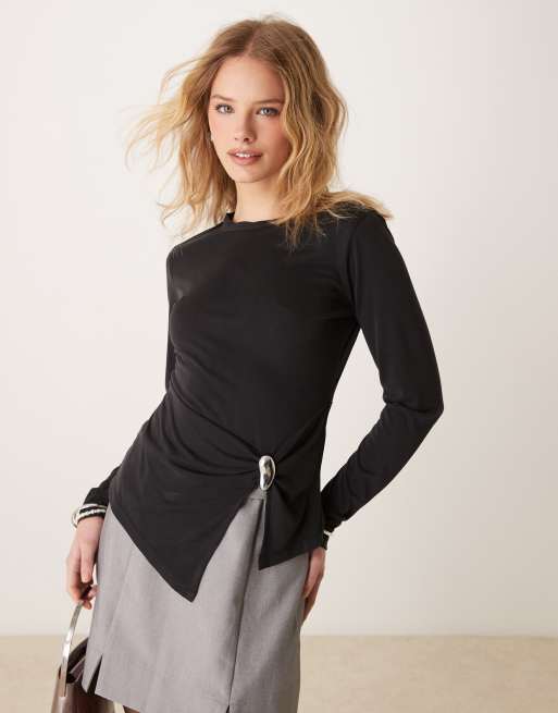 ASOS DESIGN long sleeve modal twist top with silver trim in black