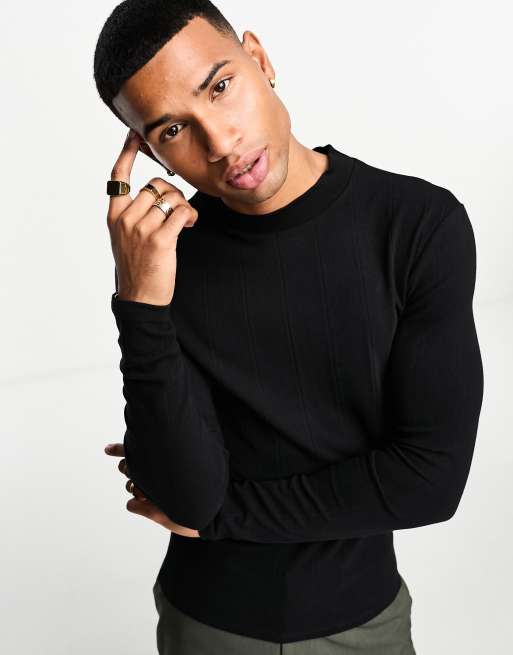 ASOS DESIGN long sleeve muscle fit ribbed t-shirt in black with turtle neck