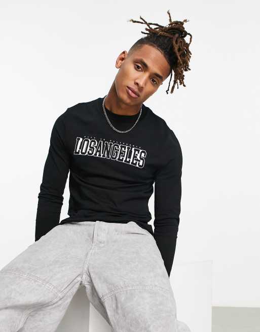 ASOS DESIGN long sleeve muscle t-shirt in black with LA front print