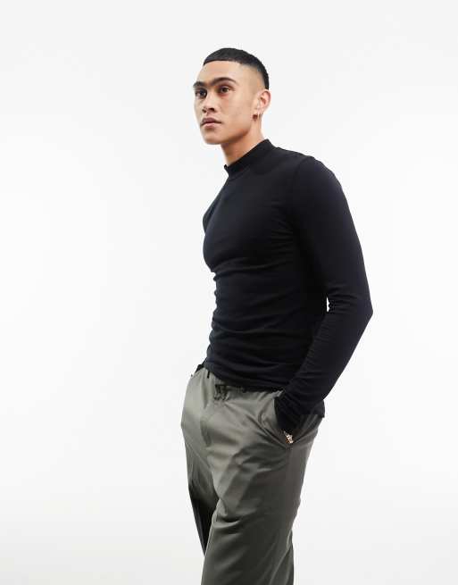 ASOS DESIGN long sleeve muscle t-shirt with turtleneck in black