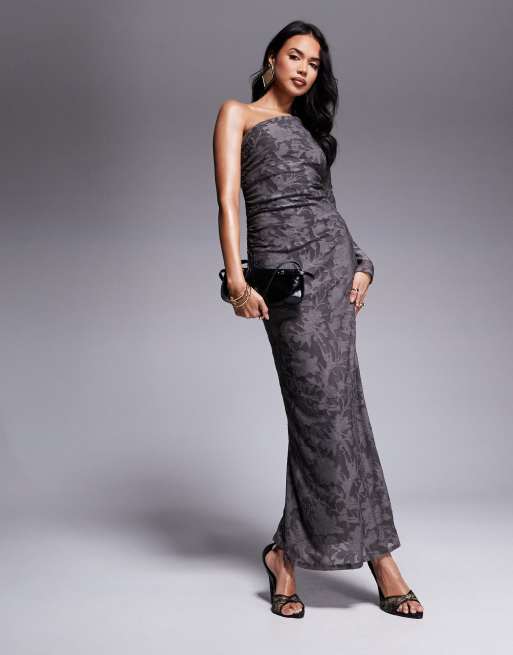 ASOS DESIGN long sleeve ruched devore maxi dress in grey